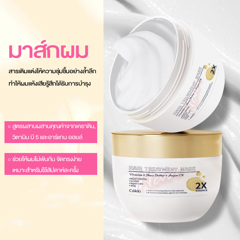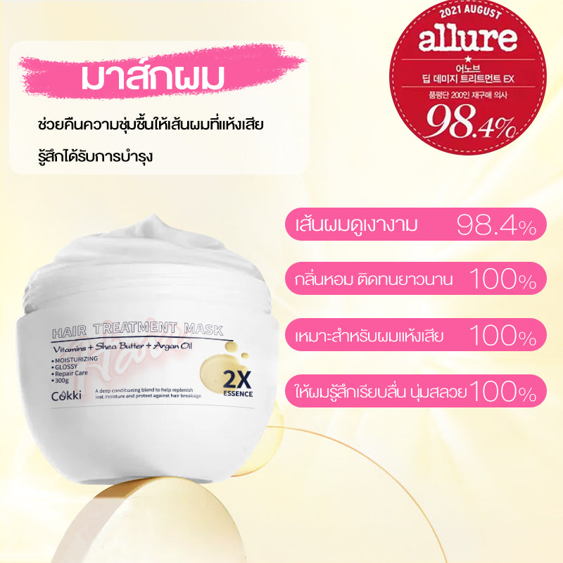 มาส์กผม ฟื้นบำรุงผมเสียหนัก ลดผมร่วง ผมแห้งแตกปลาย Cokki hair treatment mask 300g